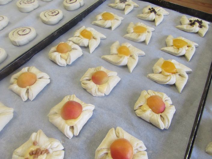 Danish Pastry Course recommended for students of all abilities includes Cinnamon Swirls Bear's Claws, Pinwheels, Pockets and Envelopes